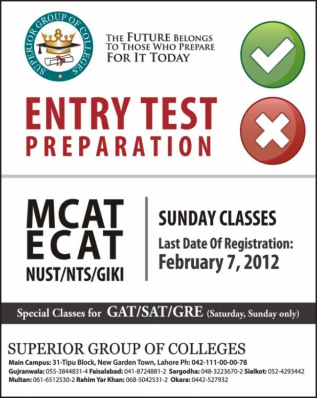 MCAT or Medical Entrance Test and ECAT or Engineering Entry Test is required for students to get admission in Medical and Engineering Colleges/ Universities respectively. All candidates applying for admission to the First Year (BE) against open merit seats and all other categories of seats (except those nominated by the Economic Affair Division, Islamabad) have to pass the test with a minimum score of 40%. Otherwise, they are not being eligible for admission. The Test remains valid for the same session only. Entry Test is based on F.Sc. (Pre-Medical) and (Pre-Engineering) or equivalent level questions prescribed by the Boards of Intermediate and Secondary Education, covering the following subjects, Mathematics, Physics, Chemistry, BIO, and English.