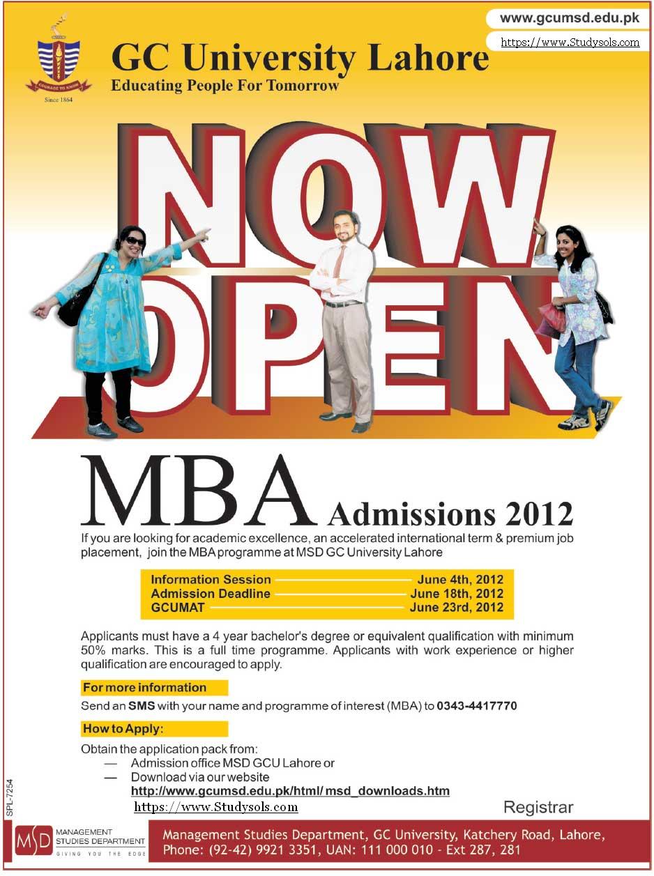 GCU Lahore MBA Executive Admissions 2025
